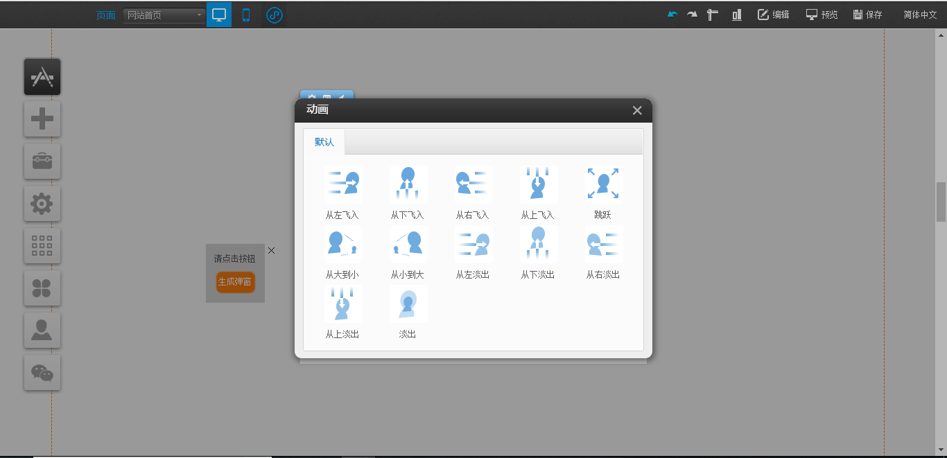 PC和手机版按钮插件( 适用版本 基础版、标准版、营销版)通过本部分的操作,您可顺利为您的网站设置按钮插件。系统提供12种按钮样式可供选择支持设置超级链接支持客户自定义按钮显示样式:文字 ,背景,边框,鼠标经过等设置1、依次点击插件-常用-选中“按钮”插件拖拽到您需要的位置。2.点击设置可以配置按钮文本和链接,并选择样式。设置链接 按钮支持透明 的样式 注意选最后一个样式将背景设置为 透明即可3、...